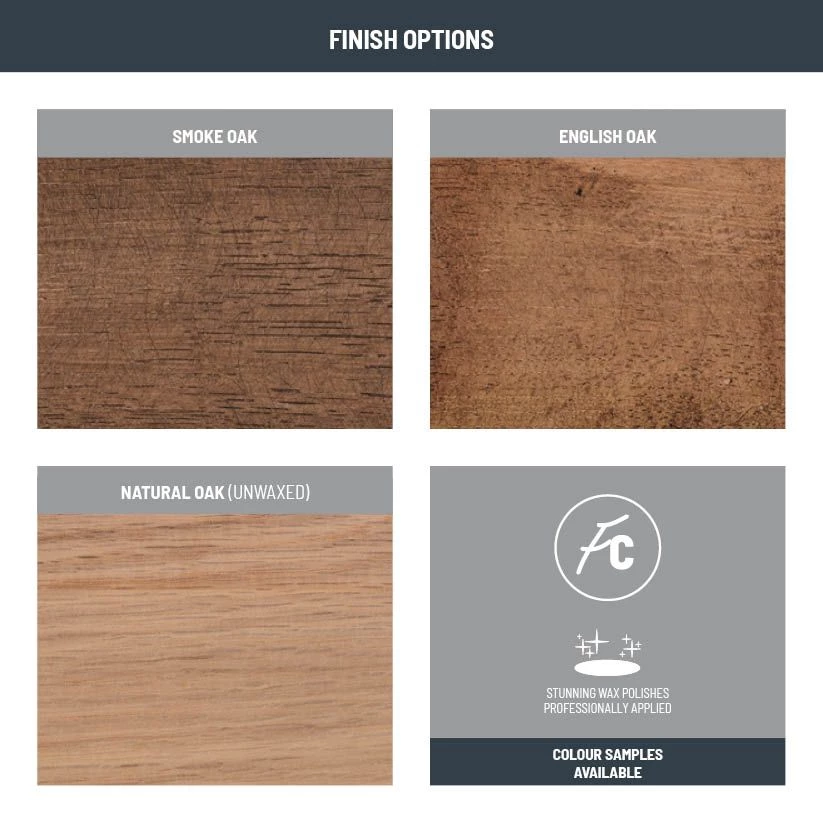 The finish is professionally applied with the highest attention to detail. And as the wax soaks into the different grains and features it enhances their look and brings them to life. The colours are: