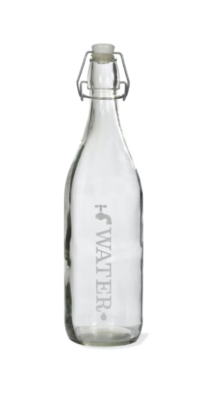 Made from glass with a ceramic stopper, this glass tap water bottle is also available in a 1 litre size.