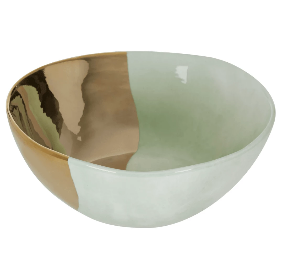 shape with irregular edges. It’s warm metallic colour gives a luxury feel to the salad bowl, a real showstopper.
