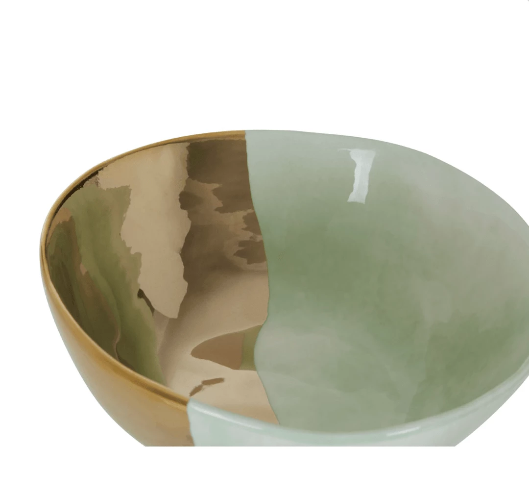 durable porcelain, this elegant gold porcelain bowl has a hand-applied reflective glaze and a truly organic