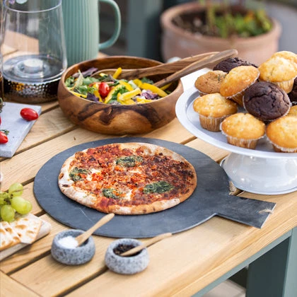 Whether It is a homemade creation or a takeaway treat, up your pizza game with our elegant slate pizza board. Crafted from natural slate, the pizza board has plenty of space for even the biggest slices. Place a couple of the pizza boards in the middle of your dining table for the ultimate pizza night. So, get your friends together for a good catch up over a pizza or two. Combine with our acacia wood pizza board, or take a look at other items from our tableware collection.