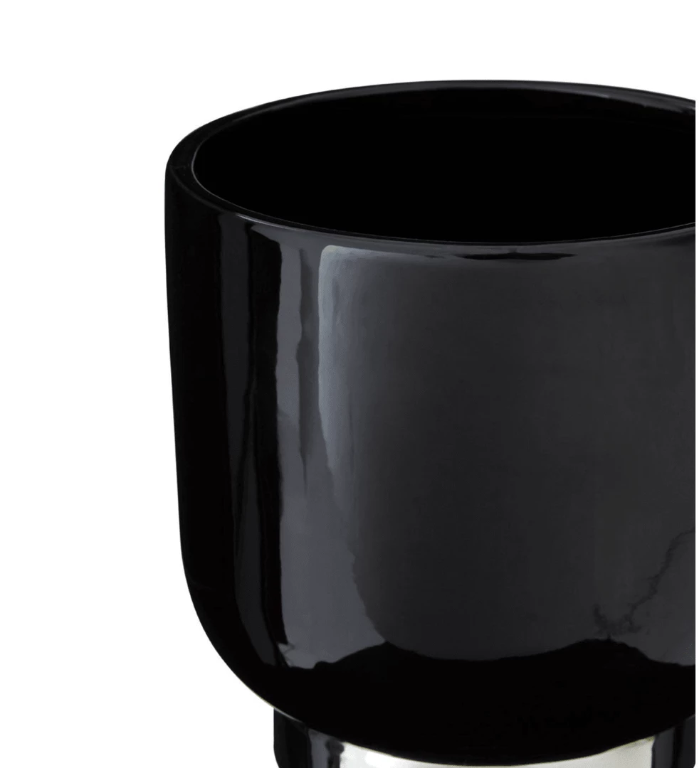 This black stoneware planter has a silver metallic base, perfect for monochrome or