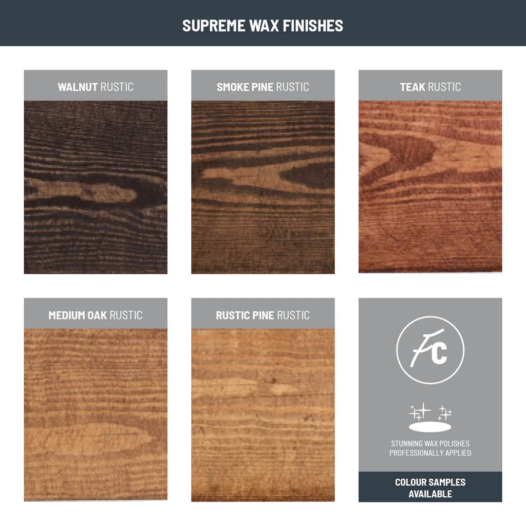 To finish these chunky wood shelves, we use your choice of one of our supreme wax polishes, which is professionally applied in our workshop.