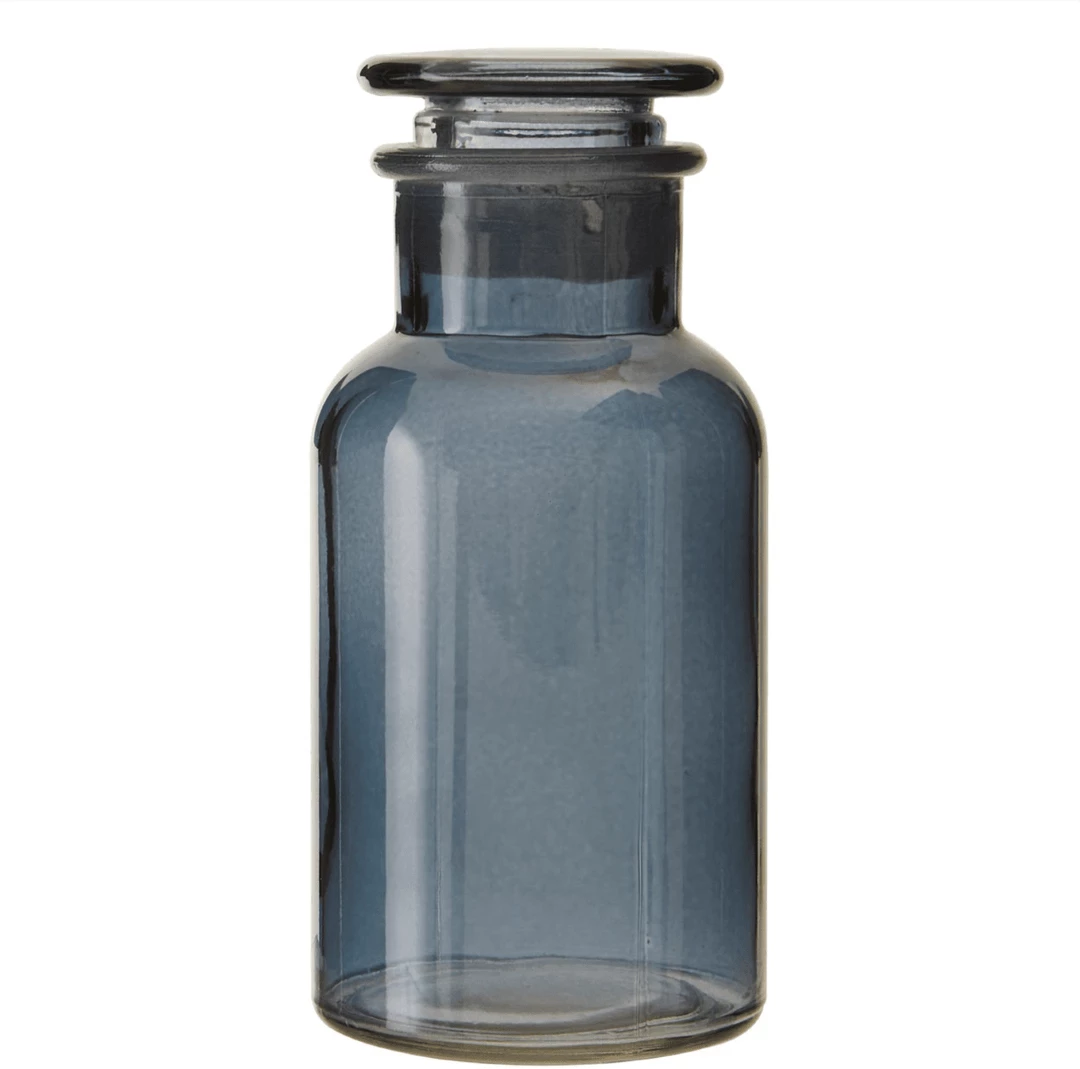 With a 250ml capacity, this small grey glass bottle with lid is a stylish way to store cosmetics, soaps and detergents, and dried goods whether that’s in your kitchen or bathroom.