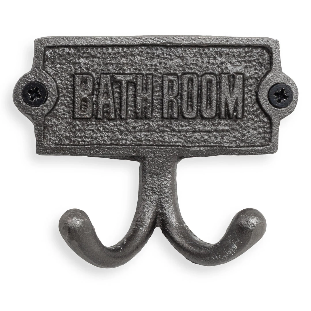 Perfect for keeping towels in order in the bathroom, our metal bathroom sign comes complete with two hooks.