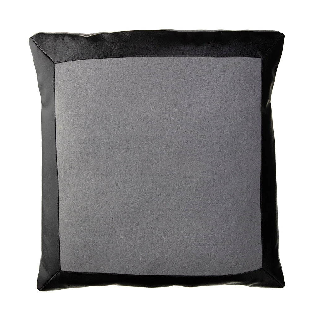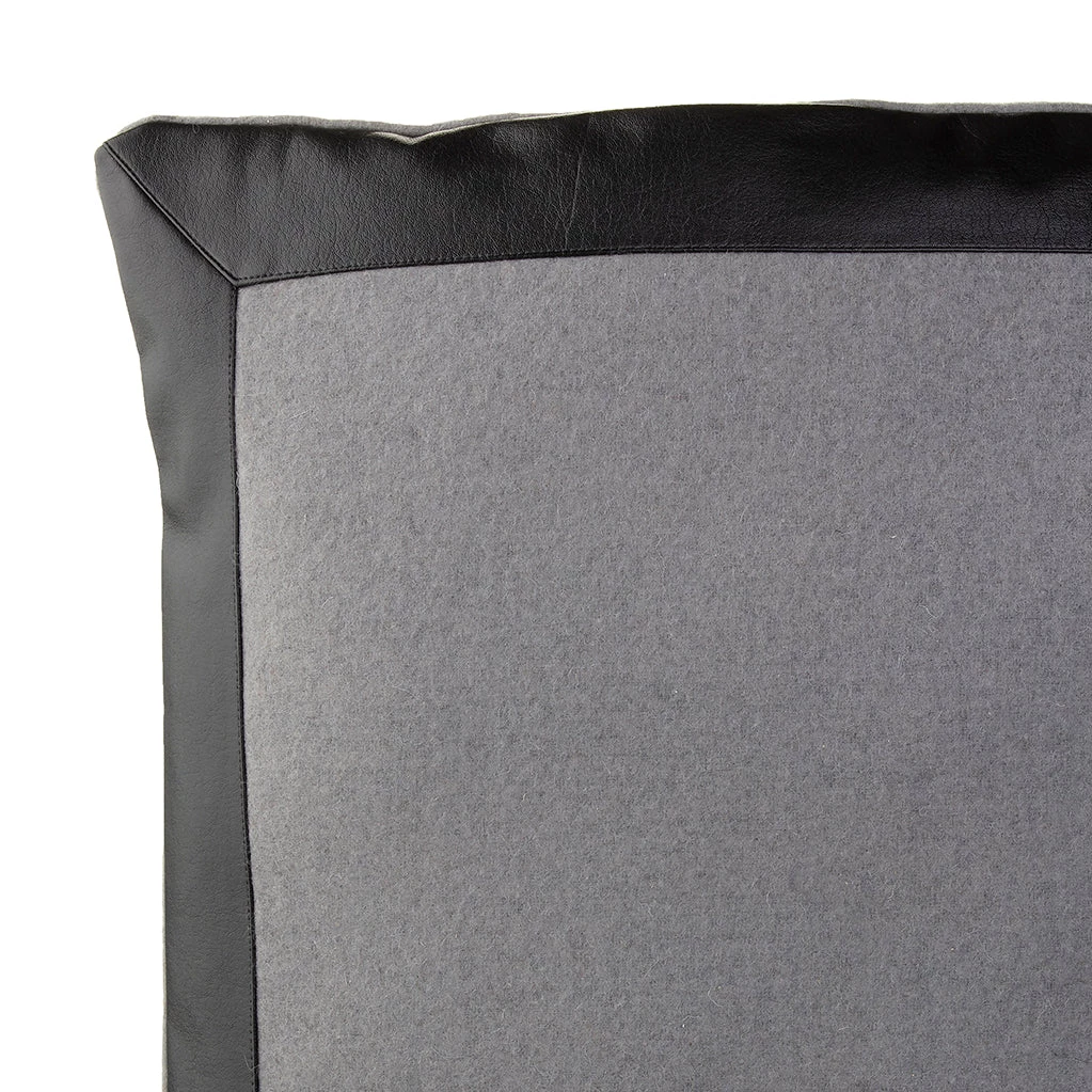 border. This cushion is made from grey felt and vegan leather and includes both the cushion cover and cushion pad.