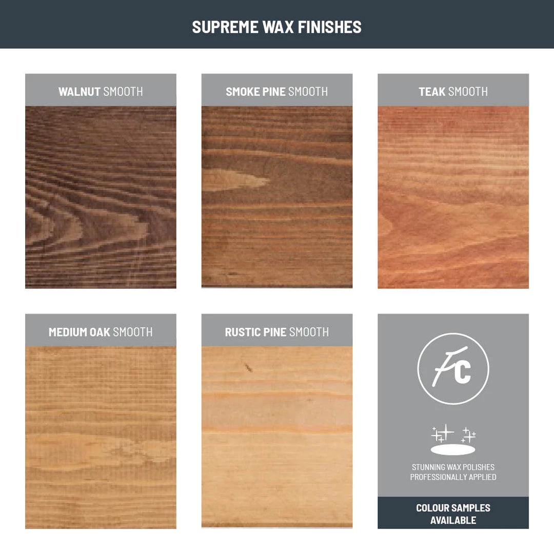 To finish these chunky wood shelves, we use your choice of one of our supreme wax polishes, which is professionally applied in our workshop.