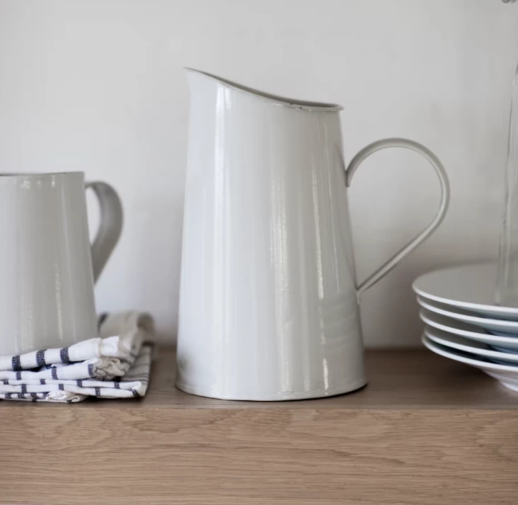 Whether it’s to fill with bright and cheerful flowers on a windowsill, or as a pitcher full of chilled water, juice, or cocktails, this chalk-white jug will bring some retro style to your home.