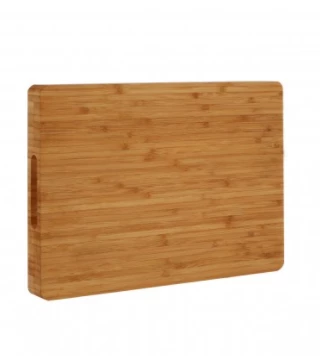 Made from bamboo with inset handles for easy manoeuvring around the kitchen, this super chunky wooden board is