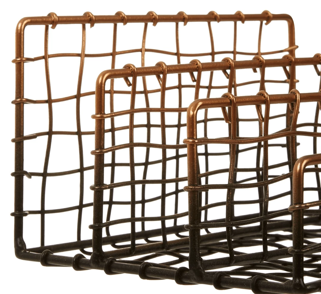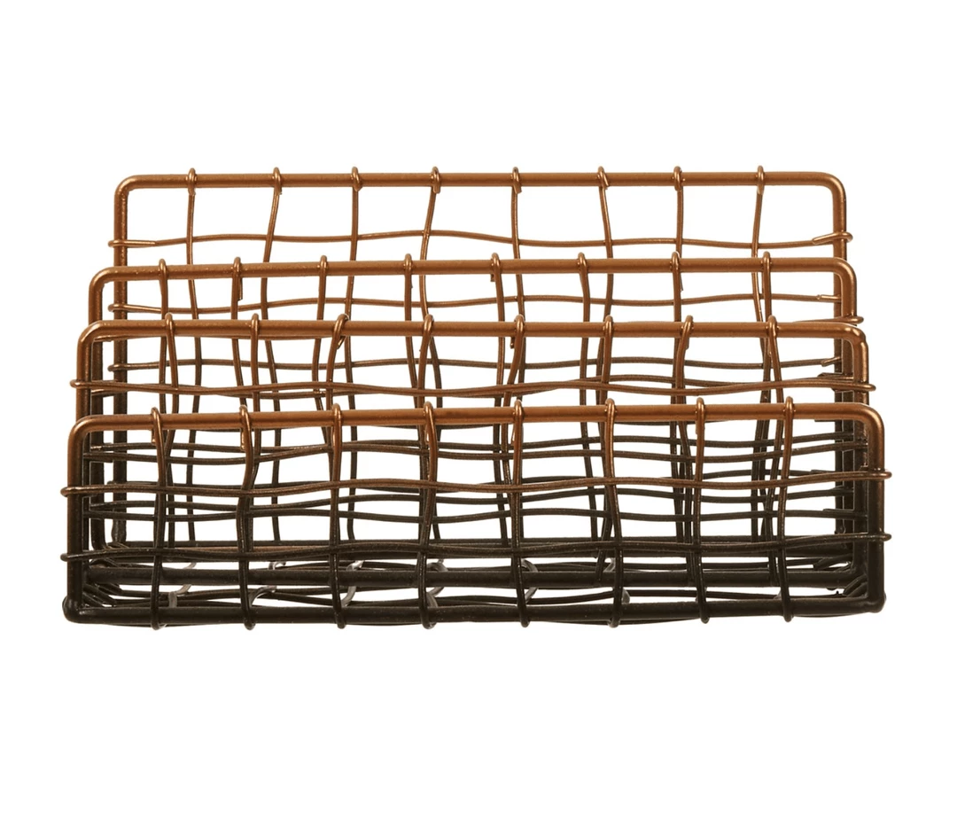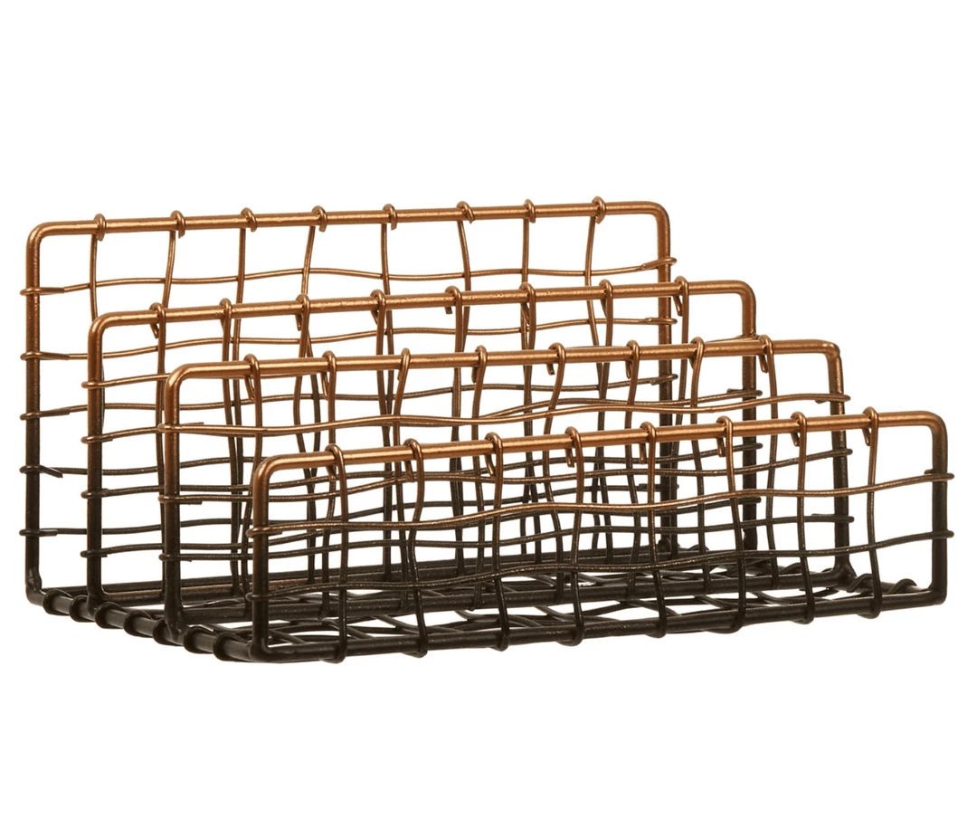 Keep important correspondence close to hand in this copper and black metal letter rack. Ideal for the home office or
