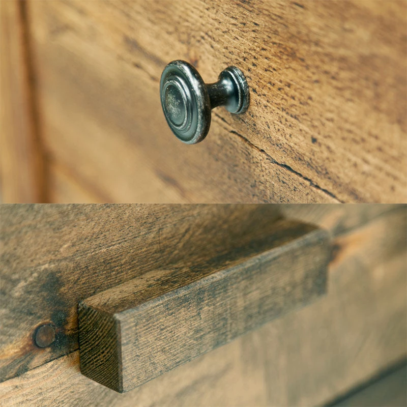 In this style you can expect to find splits, cracks, knots, shakes, waney edges, bows and twists, along with machine marks in keeping with the rustic style. These are the qualities that set our furniture apart from the rest. And due to the nature of solid wood every chest of drawers will be different. Truly unique. One of a kind. Please note that further movement may occur within the timber, particularly if the item is placed near to a heat source, which may exaggerate these natural features.