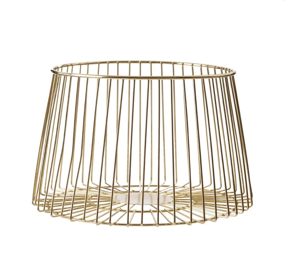Crafted from metal wire this contemporary designed gold metal fruit bowl is a