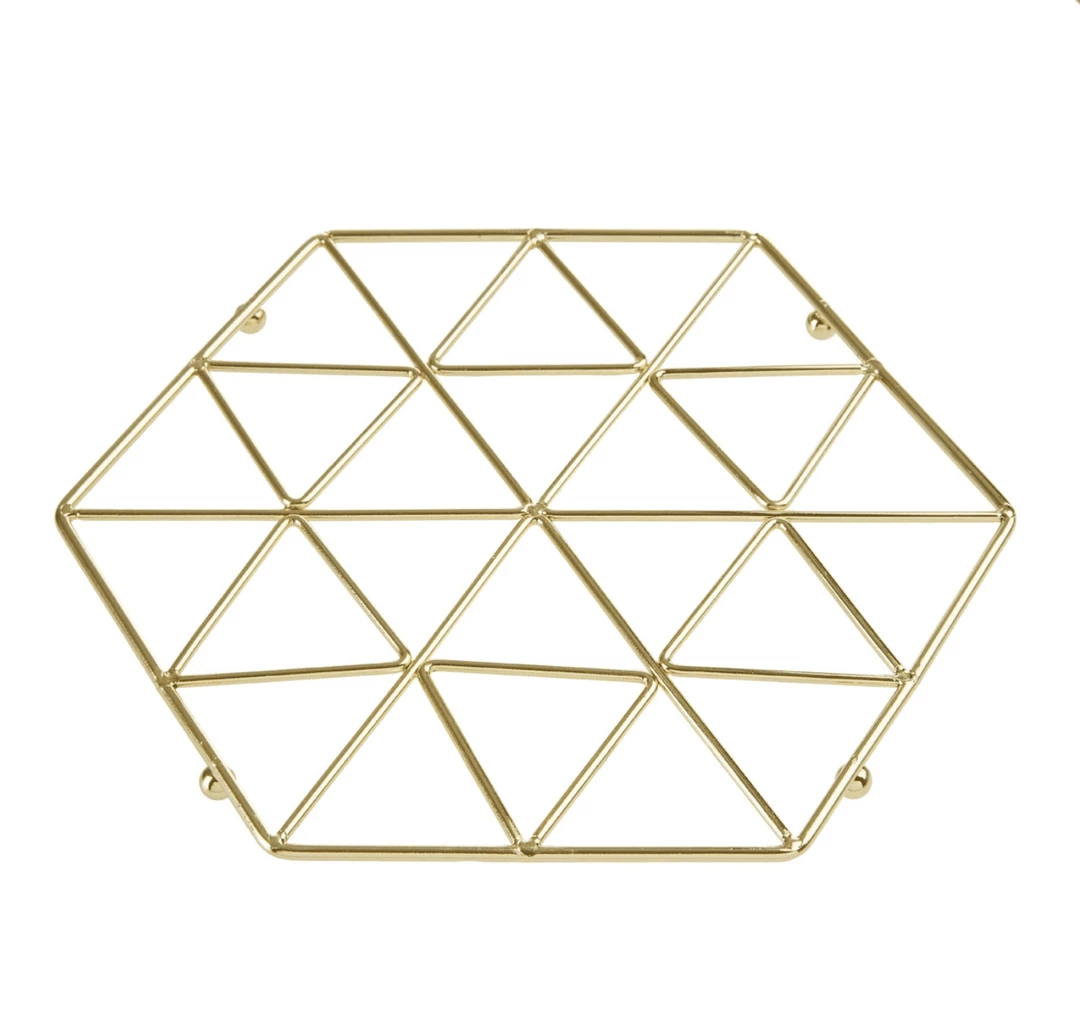 this gold metal trivet. Complete the look with other items from the range including the gold metal fruit basket, gold