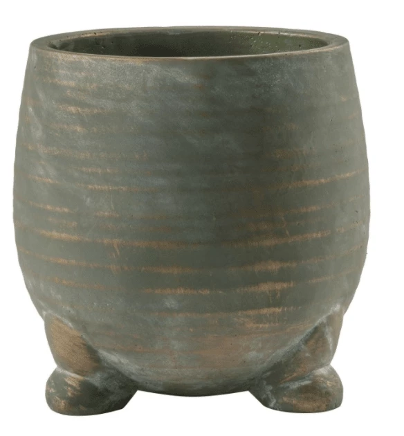 We love this pot! With It is rounded shape, dusky green and gold finish it has a wonderful tactile quality. At 19cm diameter It is a great size too, however you decide to use it. It could be a planter for your favourite house plant, a handy pot for cosmetics or costume jewellery in your bedroom, or a pot to keep your keys in the hall.