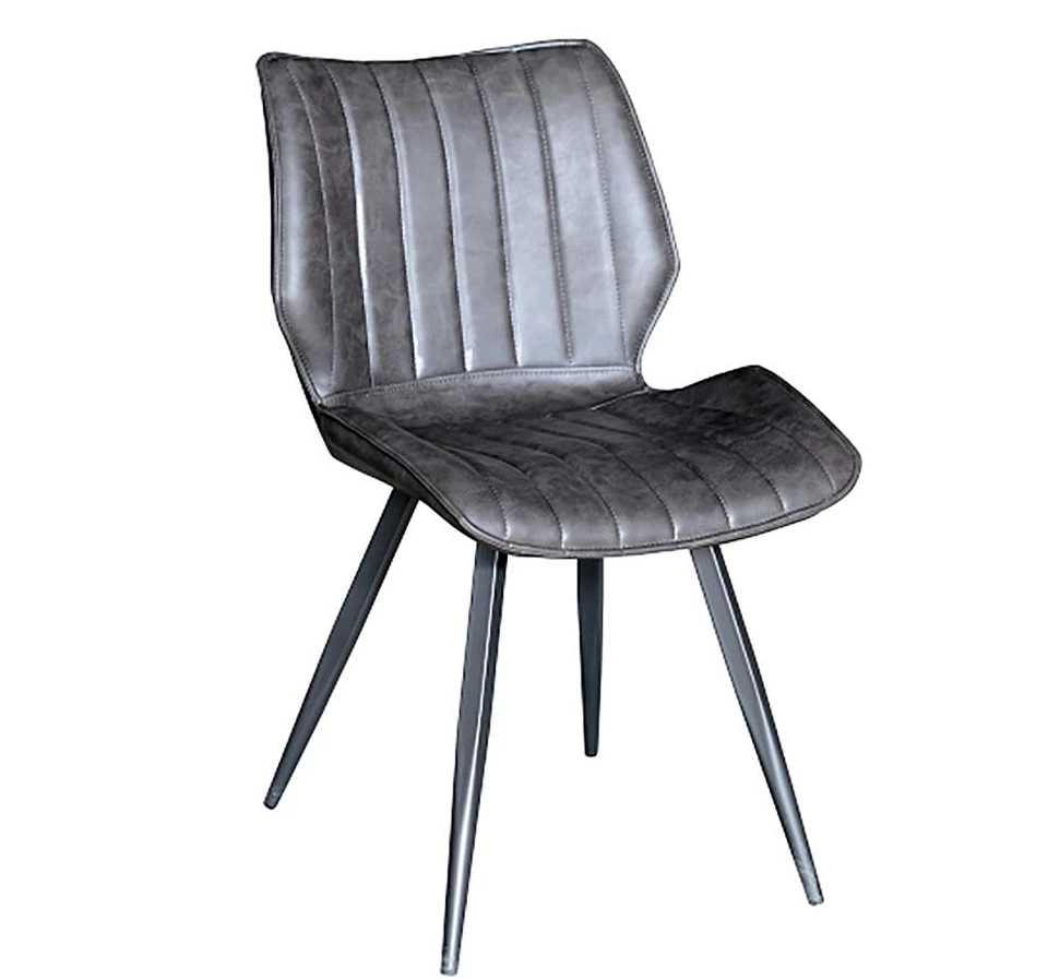 Our grey chairs are covered in super soft vegan leather, with a strong metal frame.