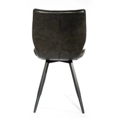 A set of two vegan leather chairs in a dark grey colour. Made from super soft vegan leather with a metal work frame.