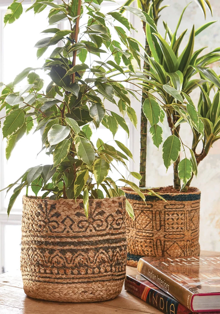 jute, then block printed with a simple pattern, these jute planters are a sustainable and organic way to display a