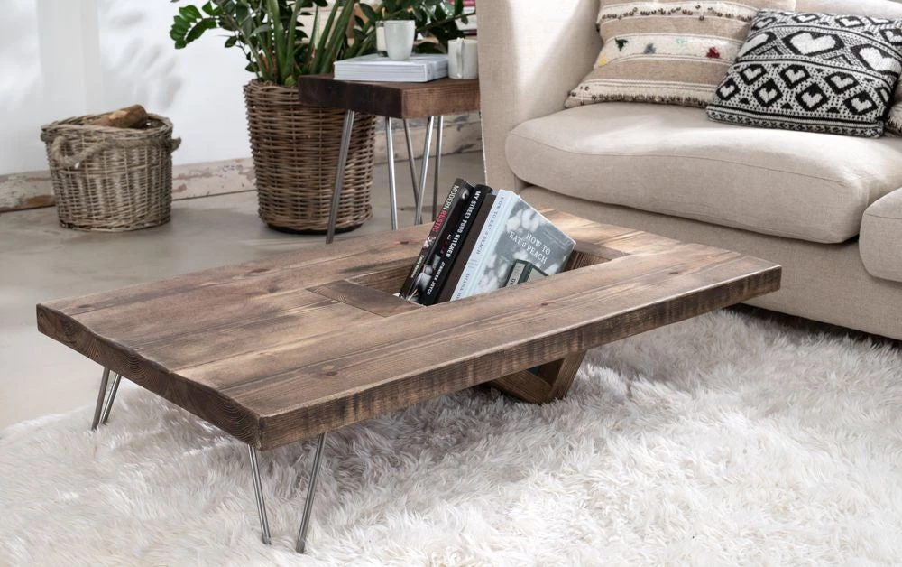 To make these hairpin coffee tables with storage we select top quality, unsorted, kiln-dried pine. Each table is cut to size and finished in our signature rustic style. This leaves in lots of natural timber characteristics and features. Mother Nature’s own stamp of approval.