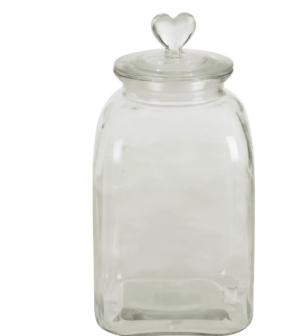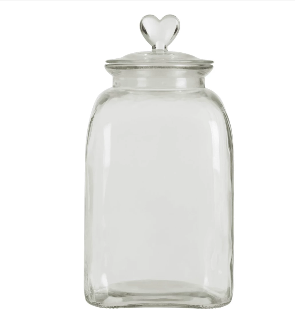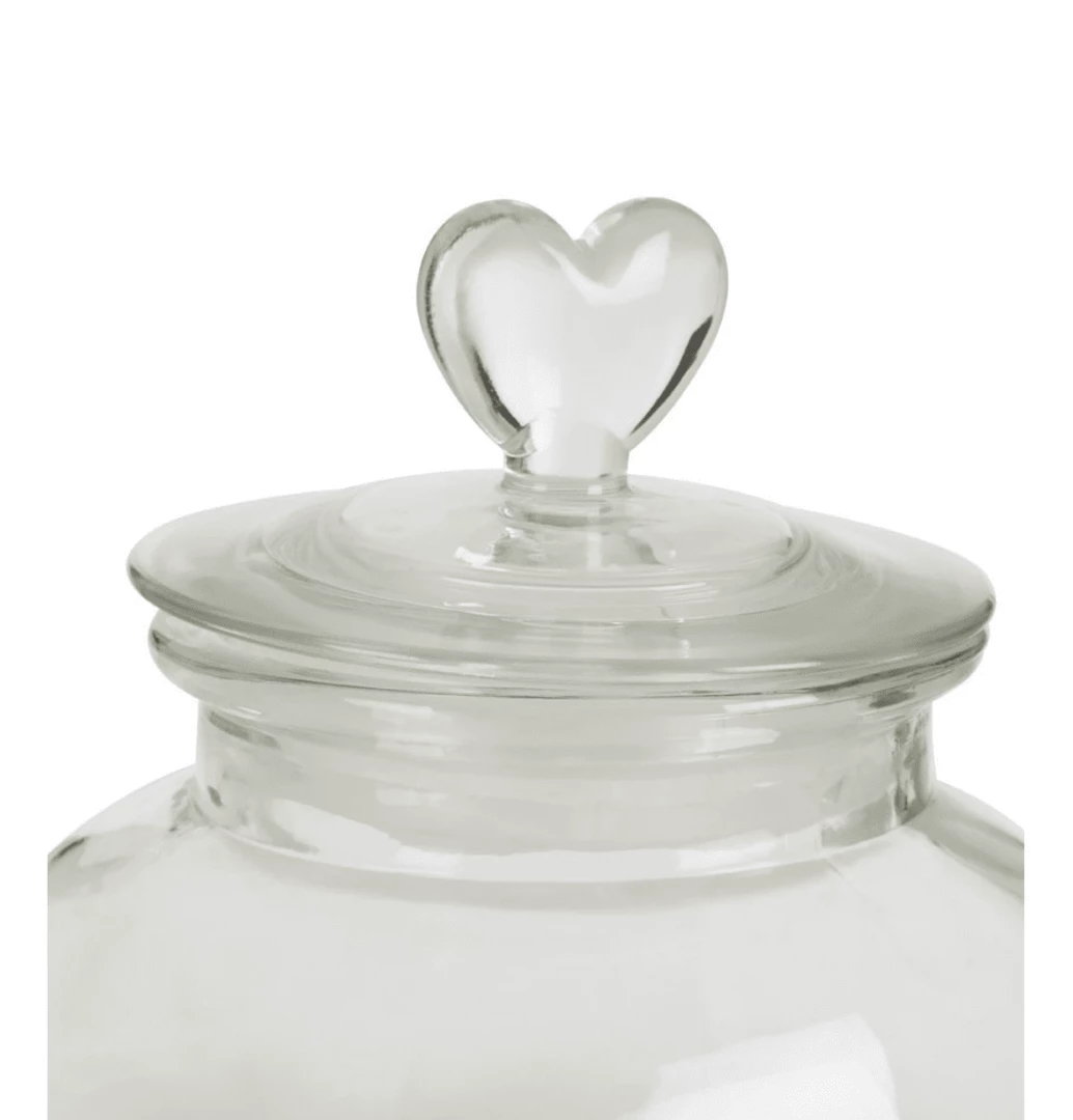 A wonderful glass storage jar with heart handle and airtight lid. Its