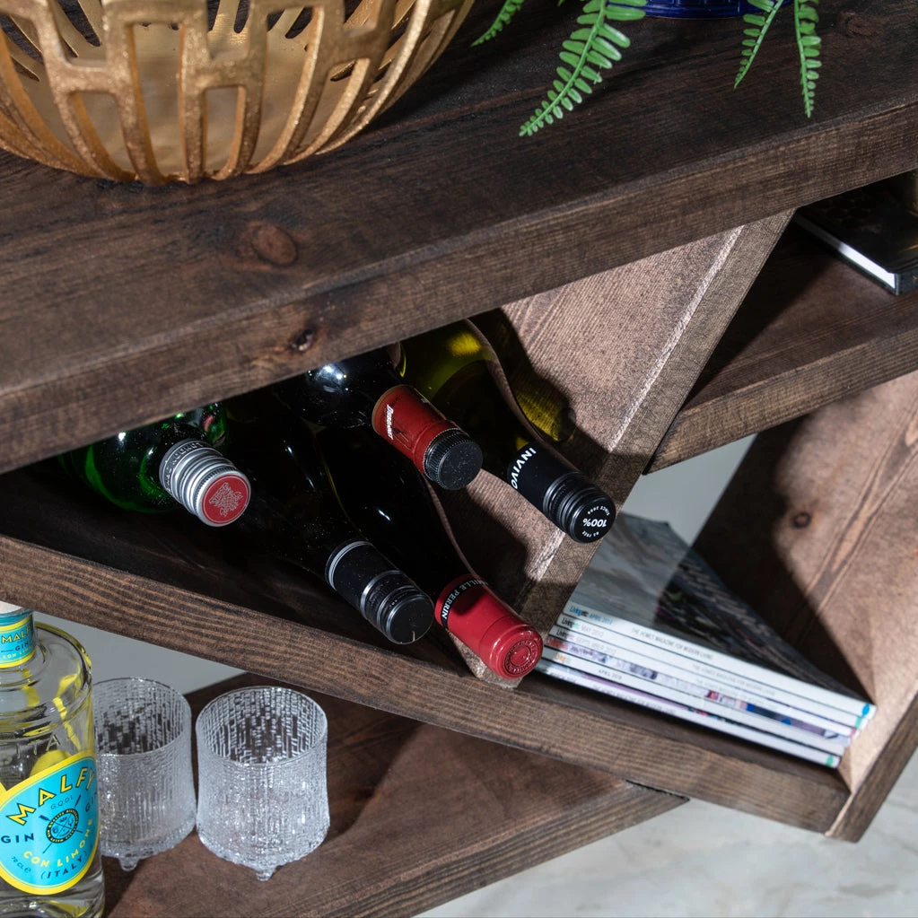 statement piece of furniture in your home with its geometric storage and display areas. It’s narrower depth makes it