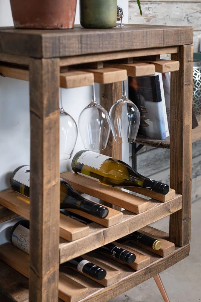 In this style, you can expect to find splits, cracks, knots, shakes, waney edges, bows and twists, along with machine marks in keeping with the rustic style. These are the qualities that set our furniture apart from the rest. And due to the nature of solid wood, every wine rack will be different. Truly unique. One of a kind. Please note that placing your item near to a heat source can cause movement within the timber which may exaggerate these natural features.