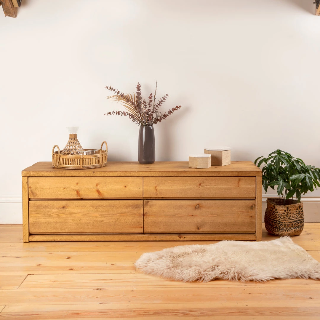 To make these low-level chests of drawers we select top quality, unsorted, kiln-dried pine. Each is cut to size and finished in our signature rustic style. This leaves in lots of natural timber characteristics and features. Mother Nature’s own stamp of approval.