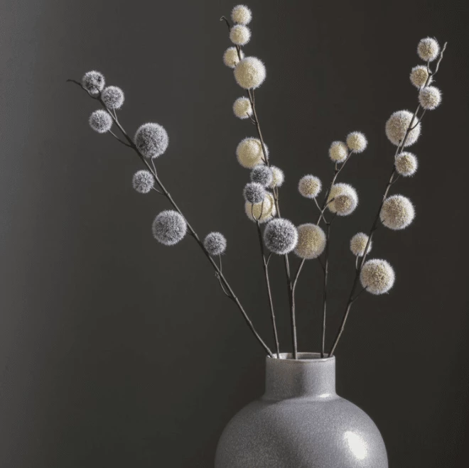Create statement displays in your large vases with our fabulous set of stems with pom poms on the end, for some fluffy glam style! You get 6 stems and at 85cm tall, these pom pom stems work wonderfully on their own, or combine with our collection of fake stemsincluding eucalyptus, delphinium and white berries, or display them on their own. Complete the look with one of our vases.