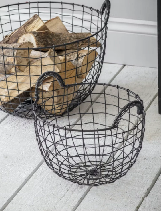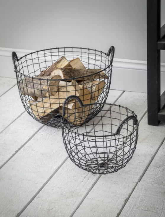 This 30cm wide log basket is the perfect accessory for your fireplace, and the ideal place to store your logs and kindling. With a simple wire design and coiled handles, it has a contemporary and chic style.