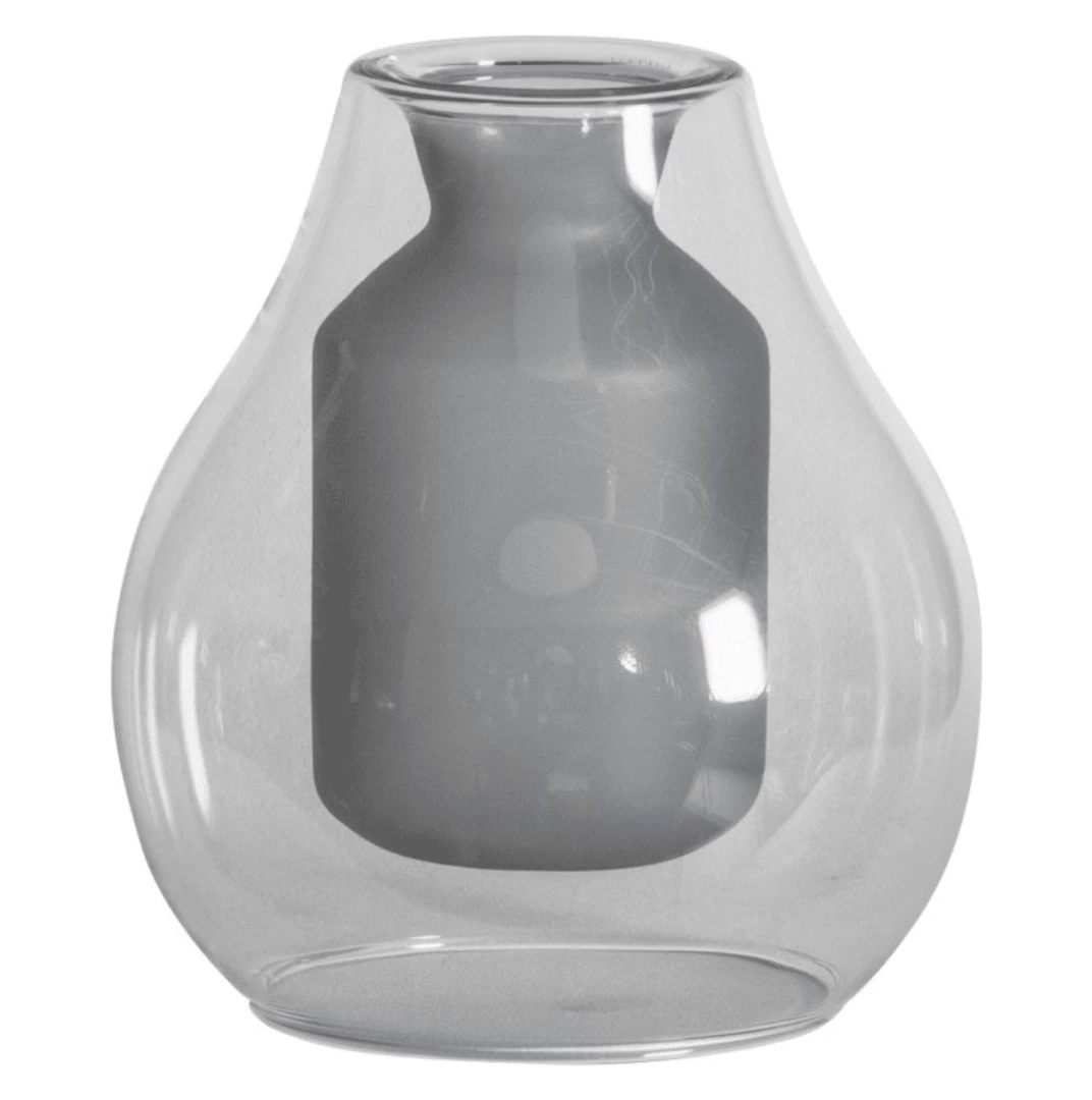 grey vase suspended inside another grey glass vase is a really wonderful, unusual design, ideal for monochrome or
