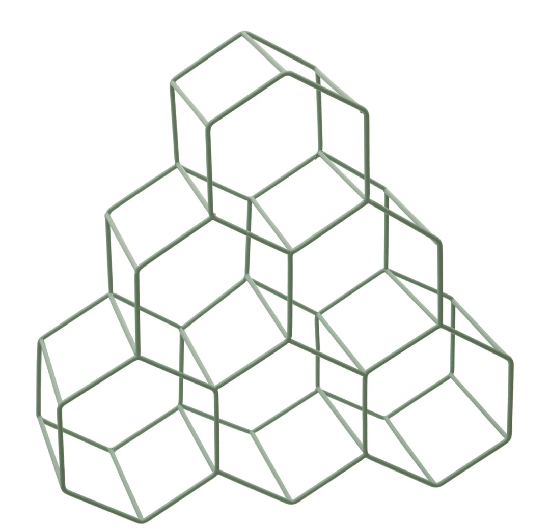 Display six of your favourite bottles of wine in this green metal wine rack. It’s distinctive geometric design