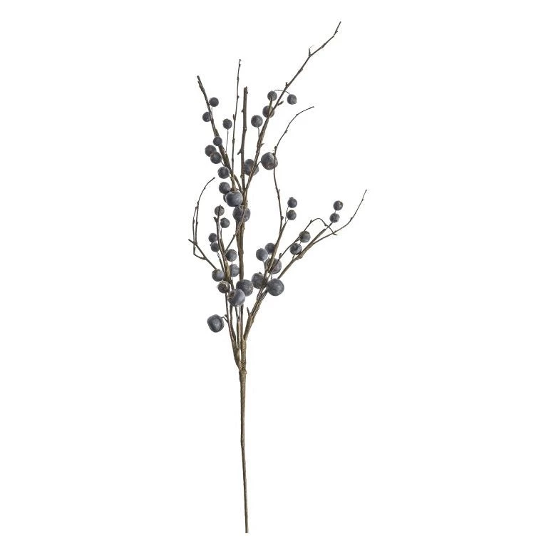 A tall stem of artificial blueberries, with a beautiful grey/blue berry and twig-like design. Tall and wide enough to