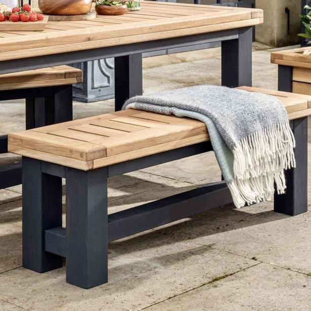 To finish our Wylam Collection outdoor dining benches, we use protective oils and paints. The kiln-dried solid oak tops are treated with a protective oil, while the tanalised pine legs are hand-painted in a choice of two colours. These finishes are professionally applied with the highest attention to detail. When viewing on screen, colours can look different from one screen to another. This makes it less reliable than seeing the real finished timber before your own eyes. Because you want the perfect colour for your home these finishes are available to purchase as small samples.